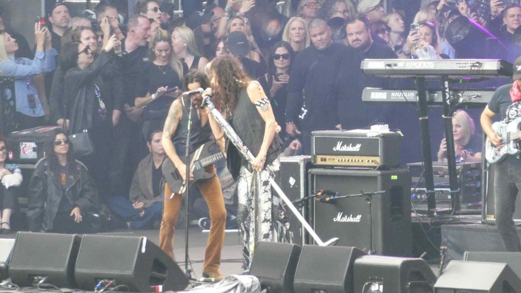 Men det som var totalt uforventa var da neste supergruppe smalt til med Judas Priests «Breaking The Law», med KK Downing og Billy Corgan med flere på plass. Kanskje ikke det tighteste vi har hørt – men den låta slår jo aldri feil! Må si jeg aldri har klart å venne meg til vokalen til Billy Corgan, og her satt jeg med et varmt ønske om at Lzzy Hale skulle komme tilbake til scenen. Uansett var det nok lite tvil om at Supergruppe nr 1 tok Supergruppe nr 2 rimelig greit. Når hyleren Corban ble byttet ut med vokalisten Sammy Hagar skulle man tro at det ble bedring, men det gikk fra “ok” til helt krise. «Flying High Again» låt som et gubbeband på den lokale pubben som har fått i seg litt for mye pappabrus før man går på scenen. Det bedret seg heldigvis underveis med «Rock Candy», men dette går virkelig ikke inn som en konsert for historiebøkene. Det bedret seg noe da vår skandinaviske representant Tobias Forge fra Ghost (som vi har intervju med i nyeste nummer! Les det her! ) entret scenen til “Bark At The Moon” (Hvorfor spilte ikke Jake E Lee den?), men dette var heller ikke spesielt bra. Men det hjelp veldig da selveste Ron Wood og Steven Tyler entret scenen og dro «Train Kept A-Rolling». Fortsatt ikke bra, men i det minste gøy å se de sammen på scenen. Og en liten avslutning med “Walk This Way”og ikke minst “Whole Lotta Love” trekker mye opp. 3/6 SOS