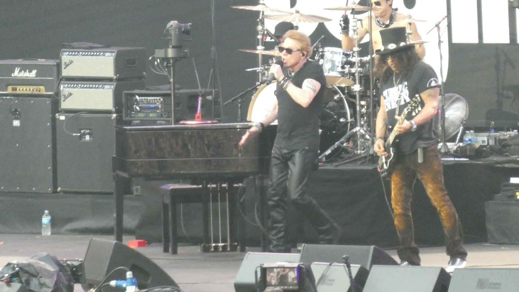 Guns N Roses var i hvert fall klar over at de var der for å hylle Black Sabbath og ikke promotere seg selv. Og hvis jeg et par avsnitt over klagde over at alle bare spilte fra de fire første Sabbath-skivene, så tok Guns ansvar og åpnet med ett skranglete minutt av «Its Alright» fra «Technical Ecstasy», før de gikk inn i tittelsporet fra «Never Say Die». Og jaggu fuglte ikke en av mine Sabbath-favoritter «Juniors Eyes», som jeg knapt kan huske å noen gang ha hørt live. Man legger merke til at Guns har ny trommis, Isaac Carpenter, for han spiller dritenergisk og utmerker seg i positiv retning. «Sabbath Bloody Sabbath» er fjerde Sabbath-låt på rappen, og her rakner det helt, for Axls vokal er helt ute av takt med resten av bandet, som heller ikke er spesielt samspilte på disse låtene. Og apropos Axls vokal… Don`t get me started! Han høres ut som en dritings Mikke Mus, er stadig ute av synch med bandet, og tar lett prisen for kveldens verste vokalprestasjon. Det var helt grusomt! Det hjalp litt da de avsluttet med «Welcome To The Jungle» og «Paradise City», og Slash leverte som man kan forvente med et par gnistrende soloer, men likevel ble dette en lidelse å høre på. Trakk et lettelsens sukk da det var over, selv om settlista til Guns på papiret var dagens beste. 2/6 GA