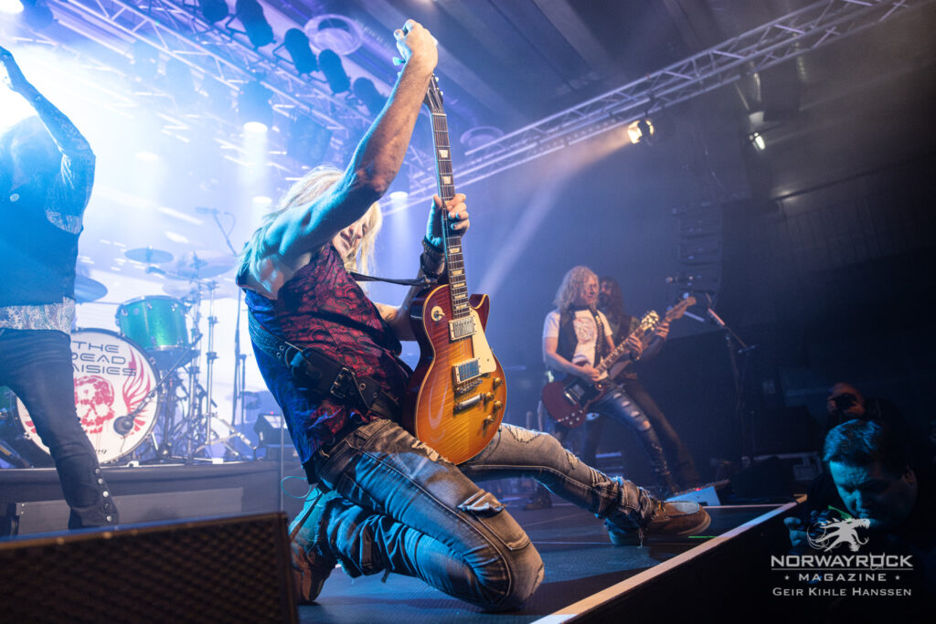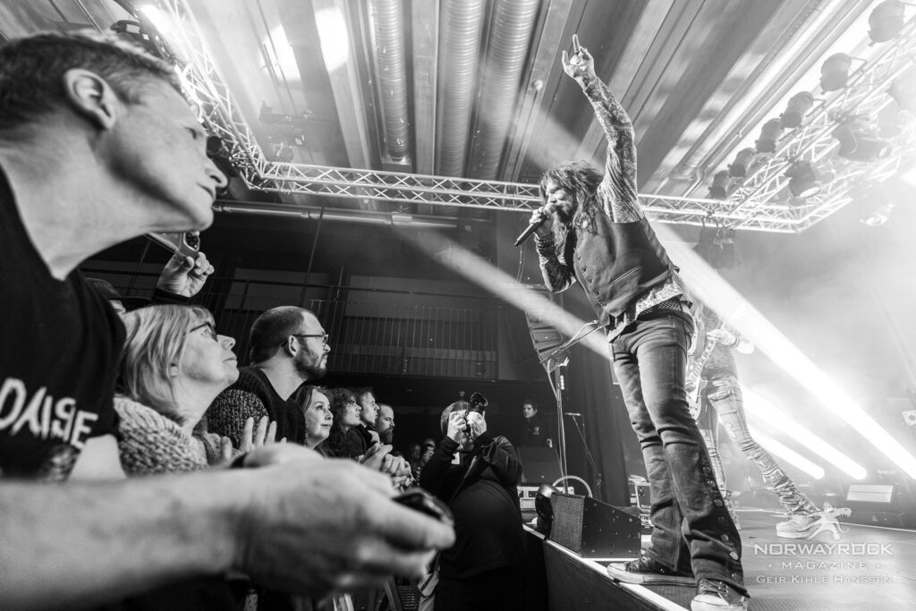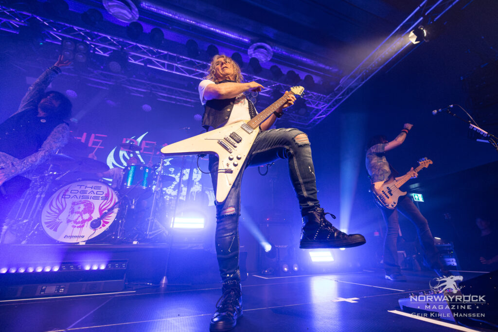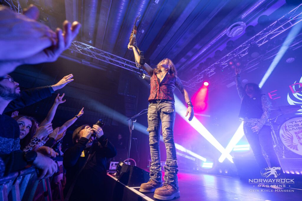 Historien bak The Dead Daisies og grunnleggeren av bandet, David Lowy, er gammelt nytt og en kjent historie. Noen vil kanskje kalle han musikkens svar på Manchester City, men det er ingen som helst tvil om at mannen elsker musikk og det å stå på scenen omkranset av dyktige musikere. Noe som var lett å se på Vulkan Arena, og neida, han er ikke Doug, men spille kan han jaggu. Til sannsynligvis noens sorg og andres glede var John Corabi tilbake etter en periode med legendariske Glenn Hughes bak mikken. Og er det noen som har scene-sjarm og publikumstekke så er det John Corabi. Vi får se mellom fingrene og tilgi han for viking-fjaset han også prøvde seg på. Vokalmessig brukte han litt tid på å bli varm, men når han først hadde fått varmet opp stemmebåndene var det vanskelig å høre at mannen har passert 64 somre.